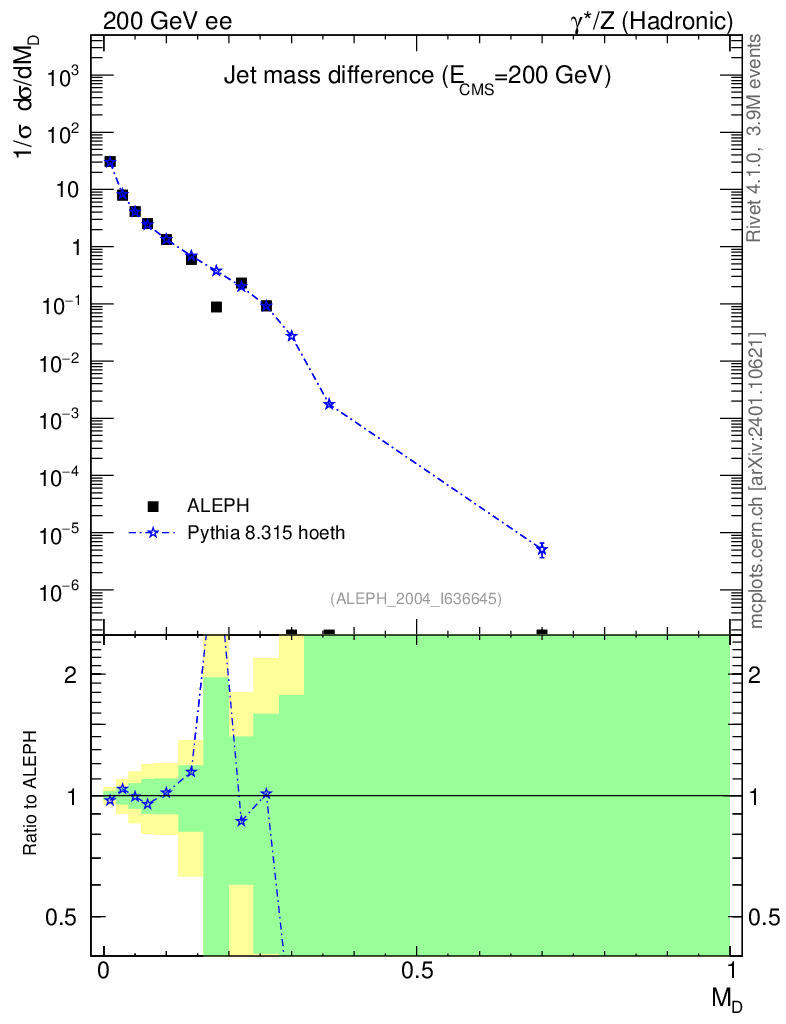 Lines: data, pythia8 8.315 hoeth |