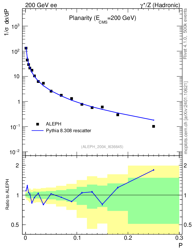 Lines: data, pythia8 8.308 rescatter |