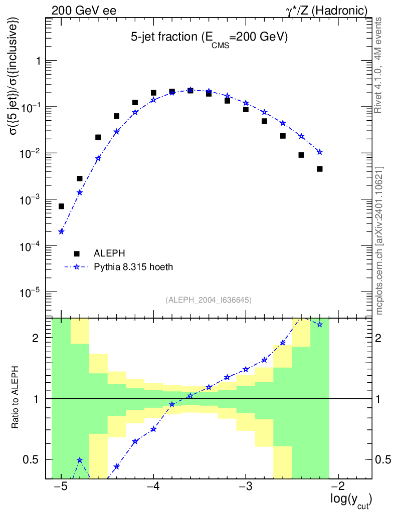 Lines: data, pythia8 8.315 hoeth |