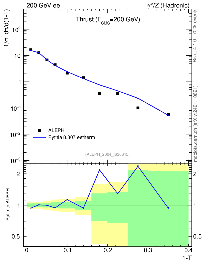 Lines: data, pythia8 8.307 eetherm |