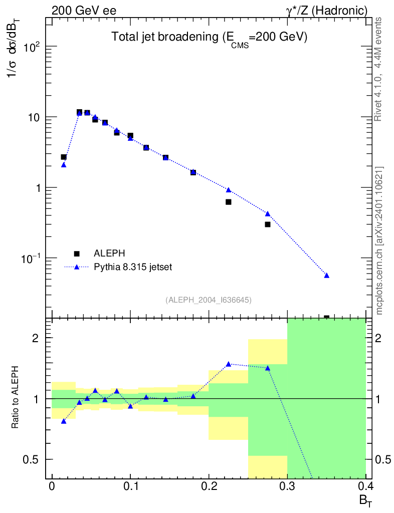 Lines: data, pythia8 8.315 jetset |