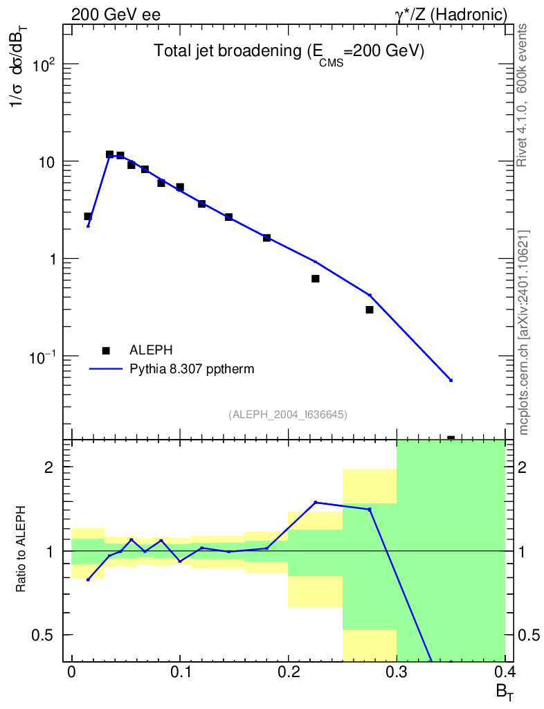 Lines: data, pythia8 8.307 pptherm |