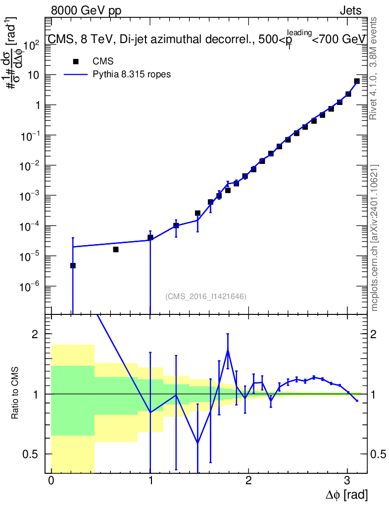 Lines: data, pythia8 8.315 ropes |