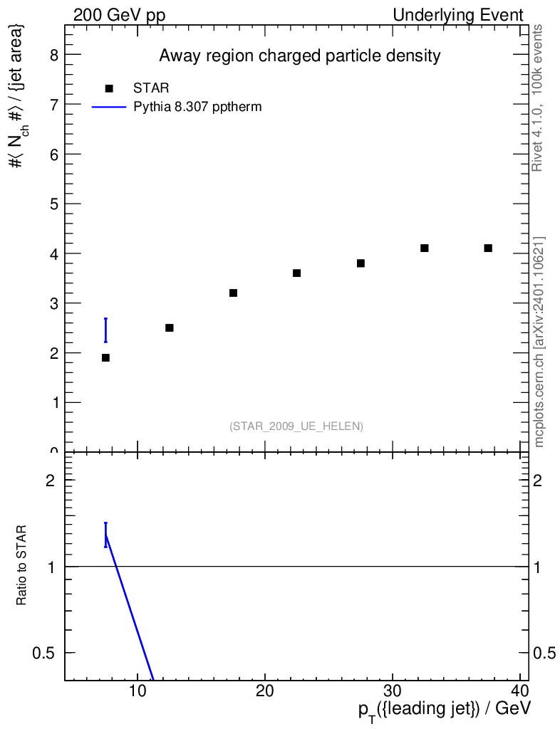 Lines: data, pythia8 8.307 pptherm |