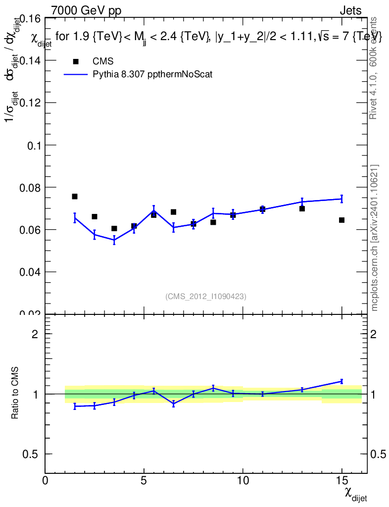 Lines: data, pythia8 8.307 ppthermNoScat |