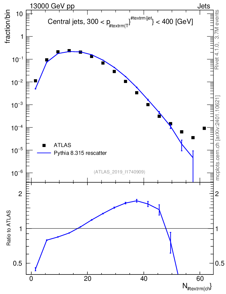 Lines: data, pythia8 8.315 rescatter |