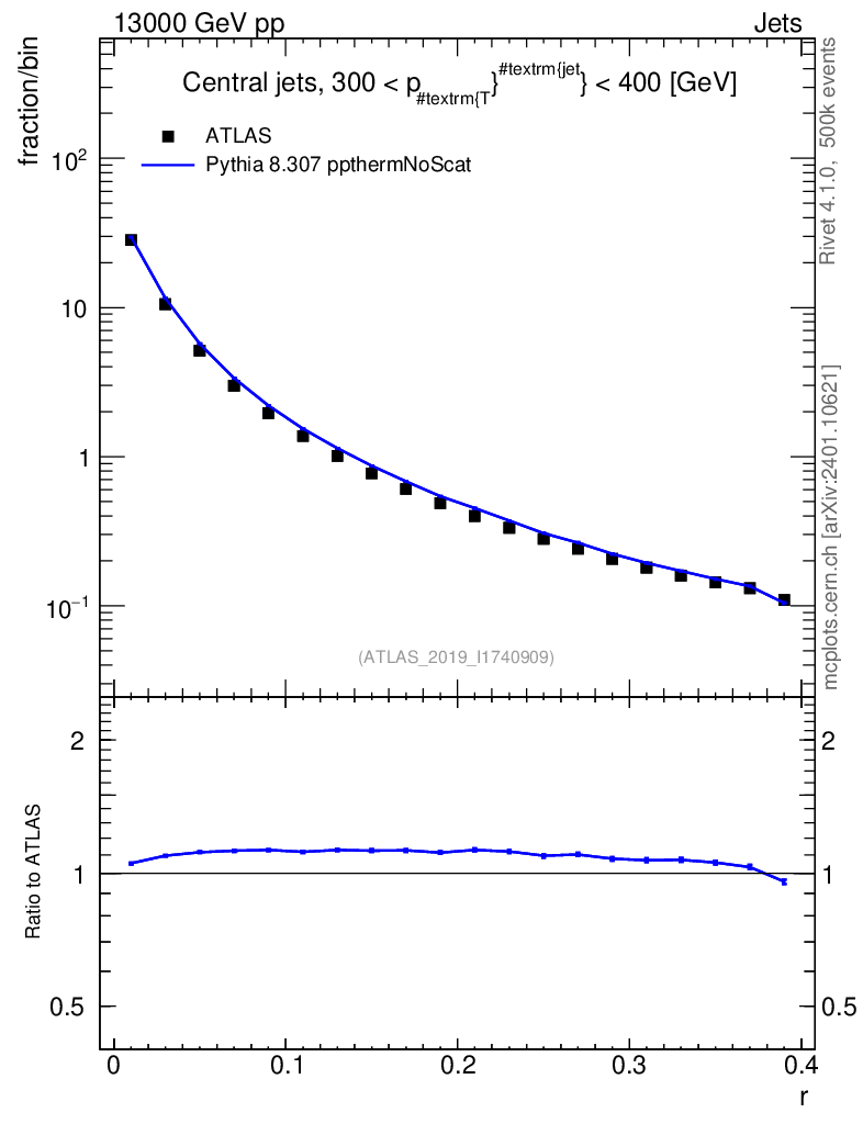 Lines: data, pythia8 8.307 ppthermNoScat |
