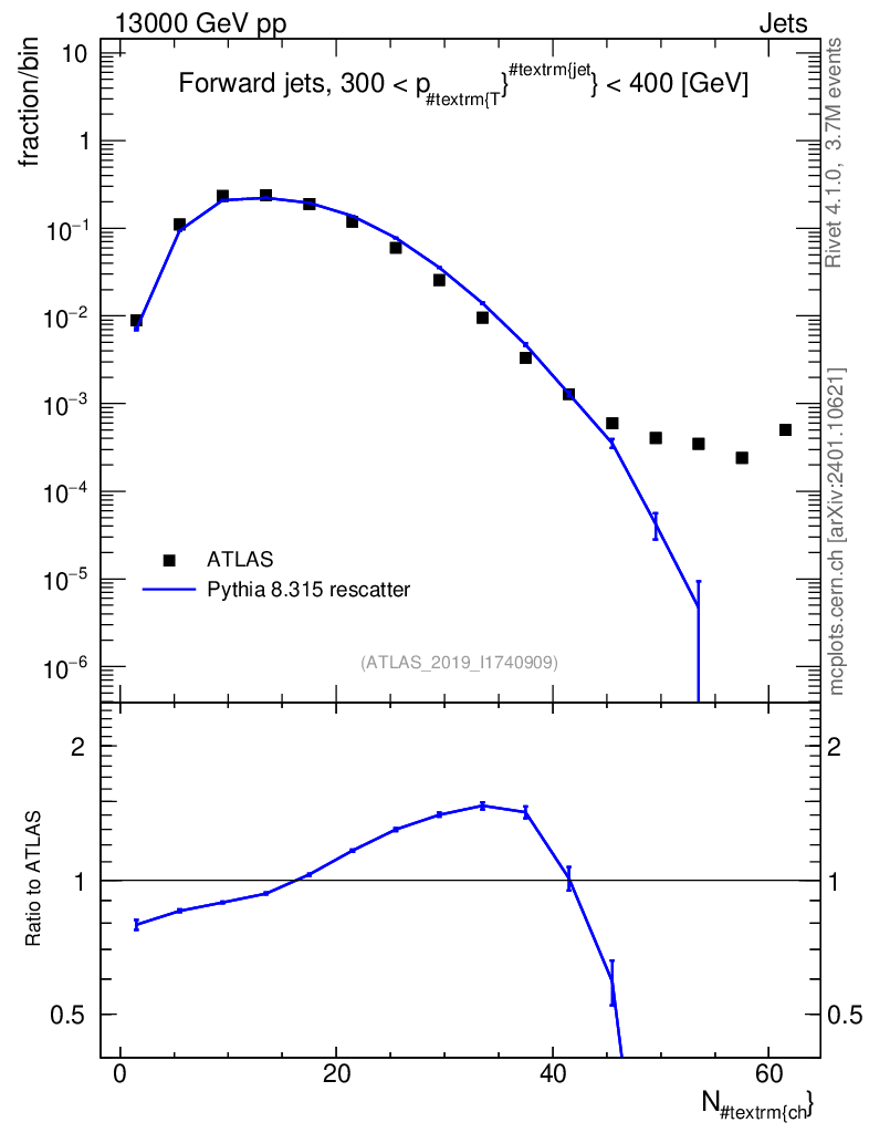 Lines: data, pythia8 8.315 rescatter |