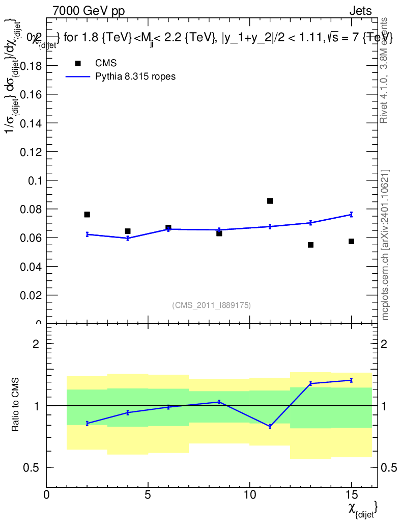 Lines: data, pythia8 8.315 ropes |