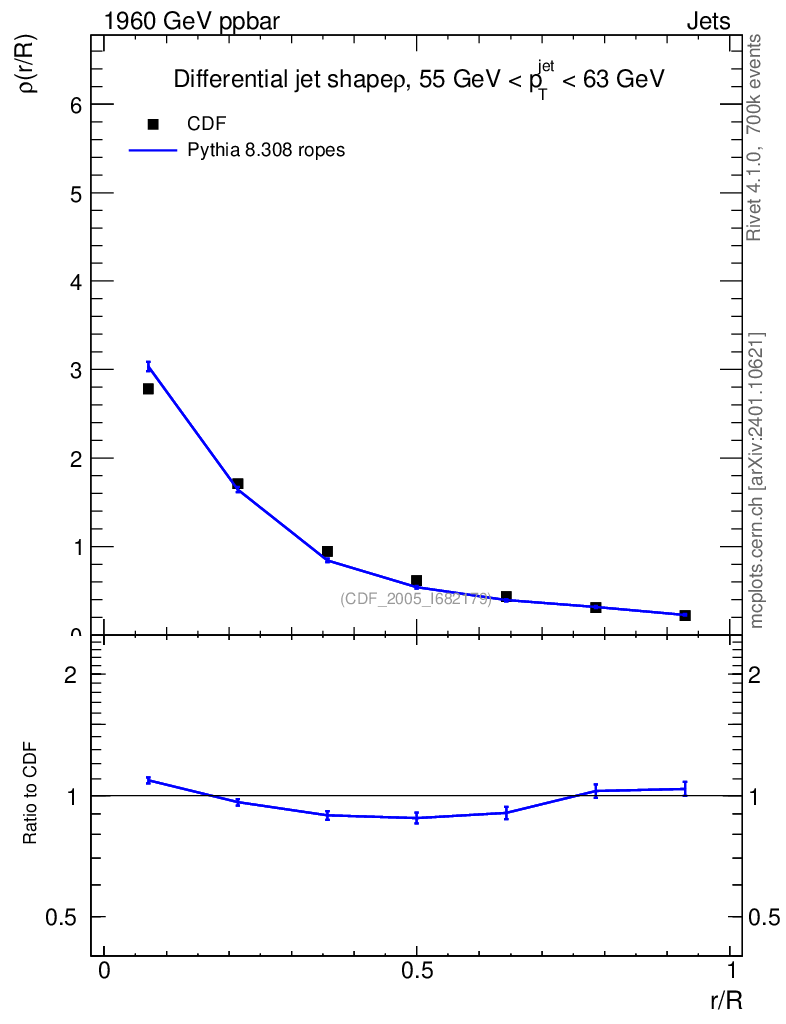 Lines: data, pythia8 8.308 ropes |