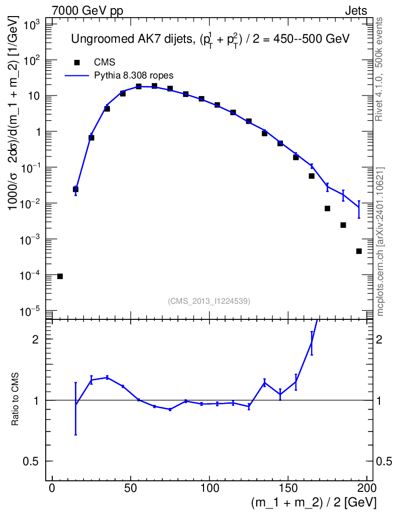 Lines: data, pythia8 8.308 ropes |