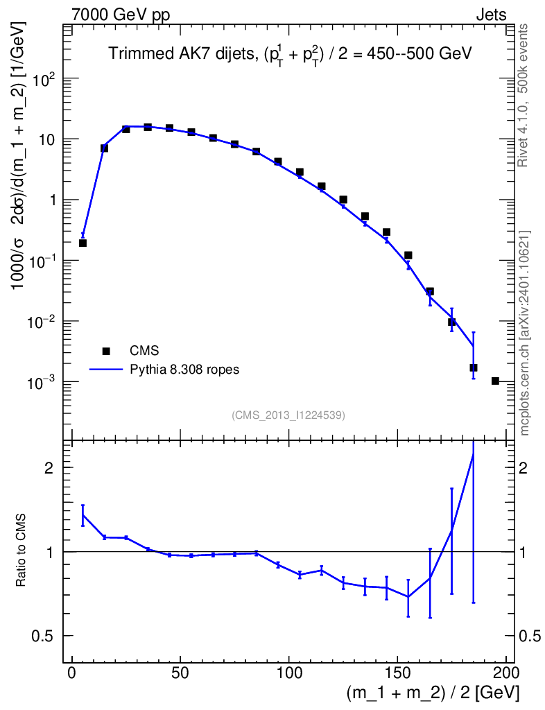 Lines: data, pythia8 8.308 ropes |