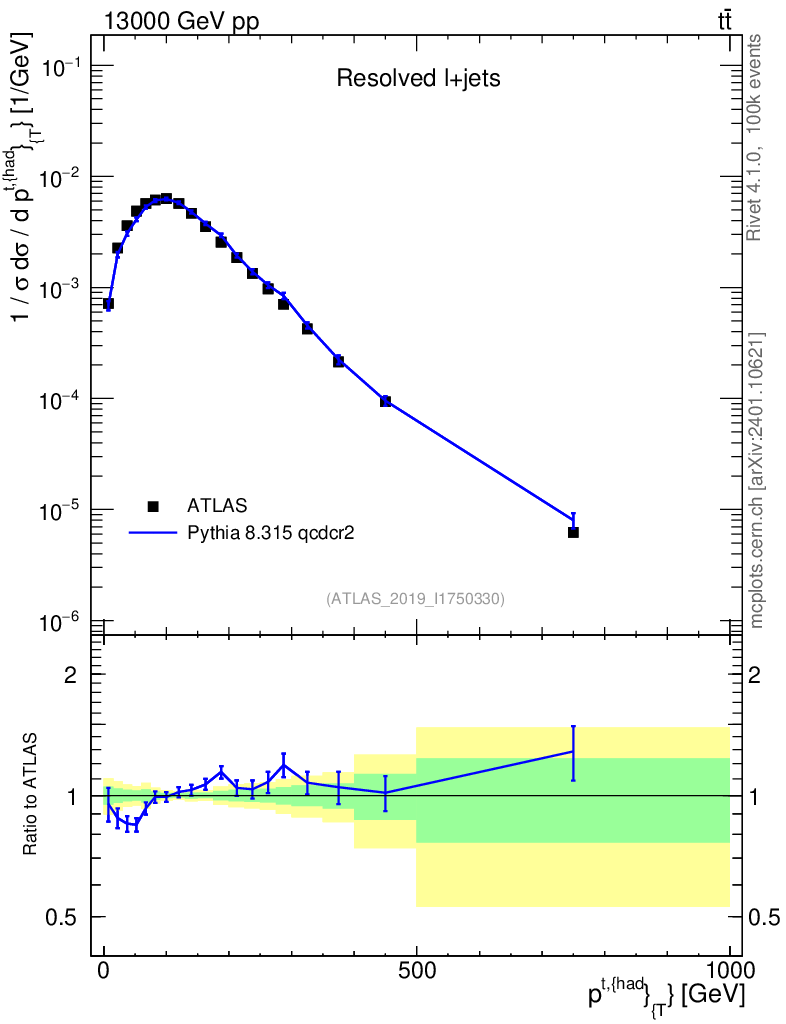 Lines: data, pythia8 8.315 qcdcr2 |