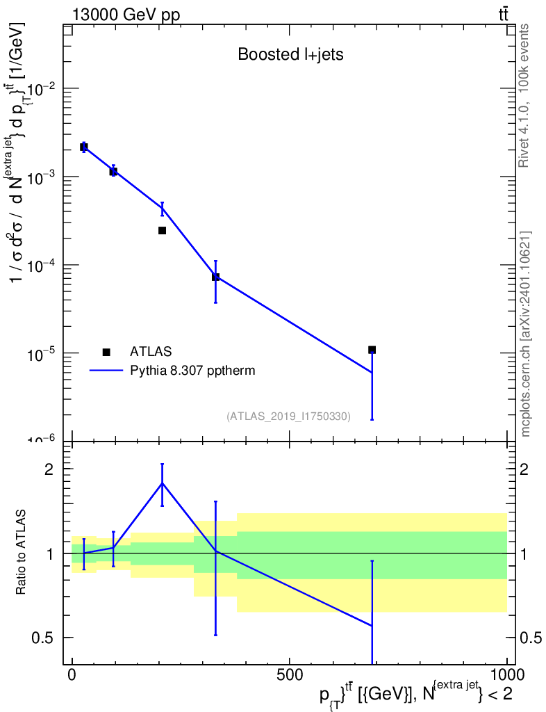 Lines: data, pythia8 8.307 pptherm |