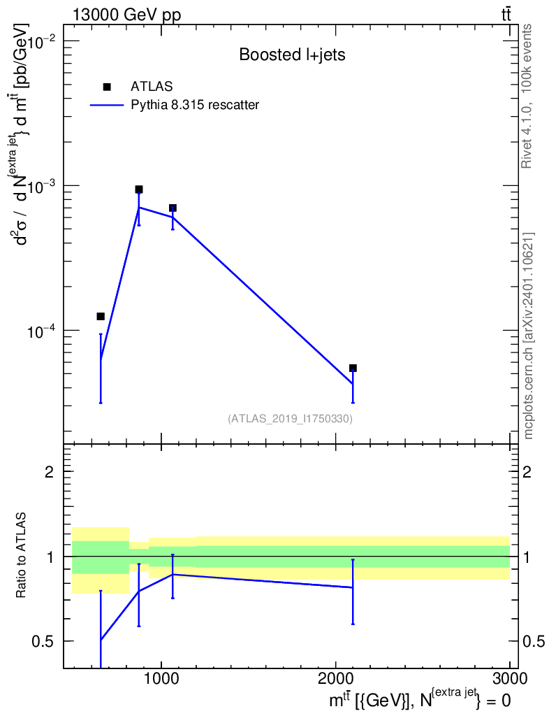 Lines: data, pythia8 8.315 rescatter |