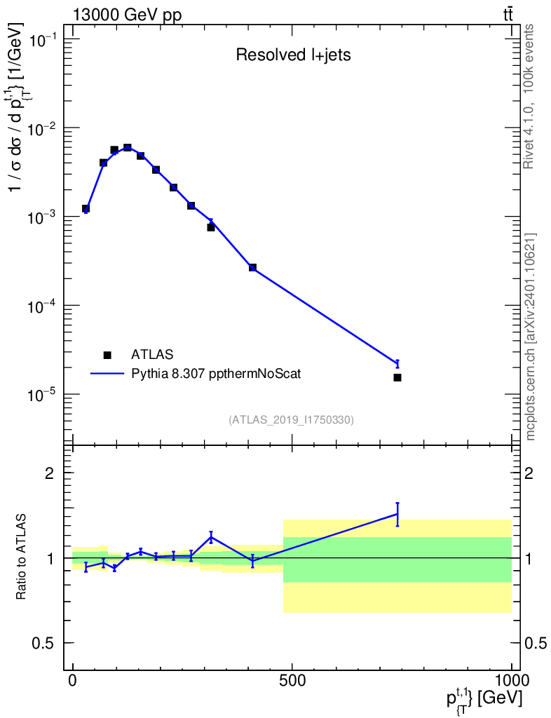Lines: data, pythia8 8.307 ppthermNoScat |