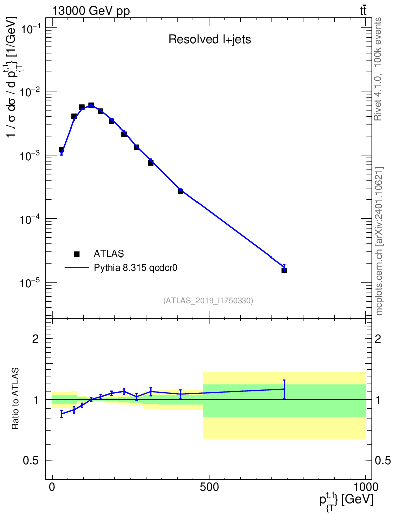 Lines: data, pythia8 8.315 qcdcr0 |