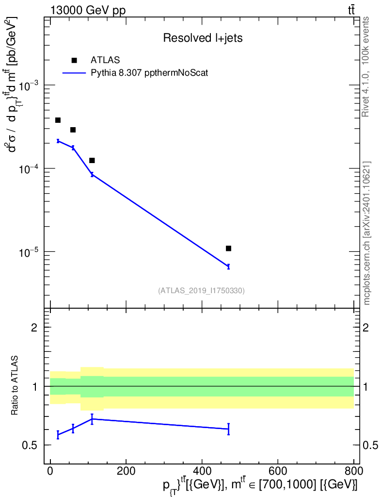 Lines: data, pythia8 8.307 ppthermNoScat |