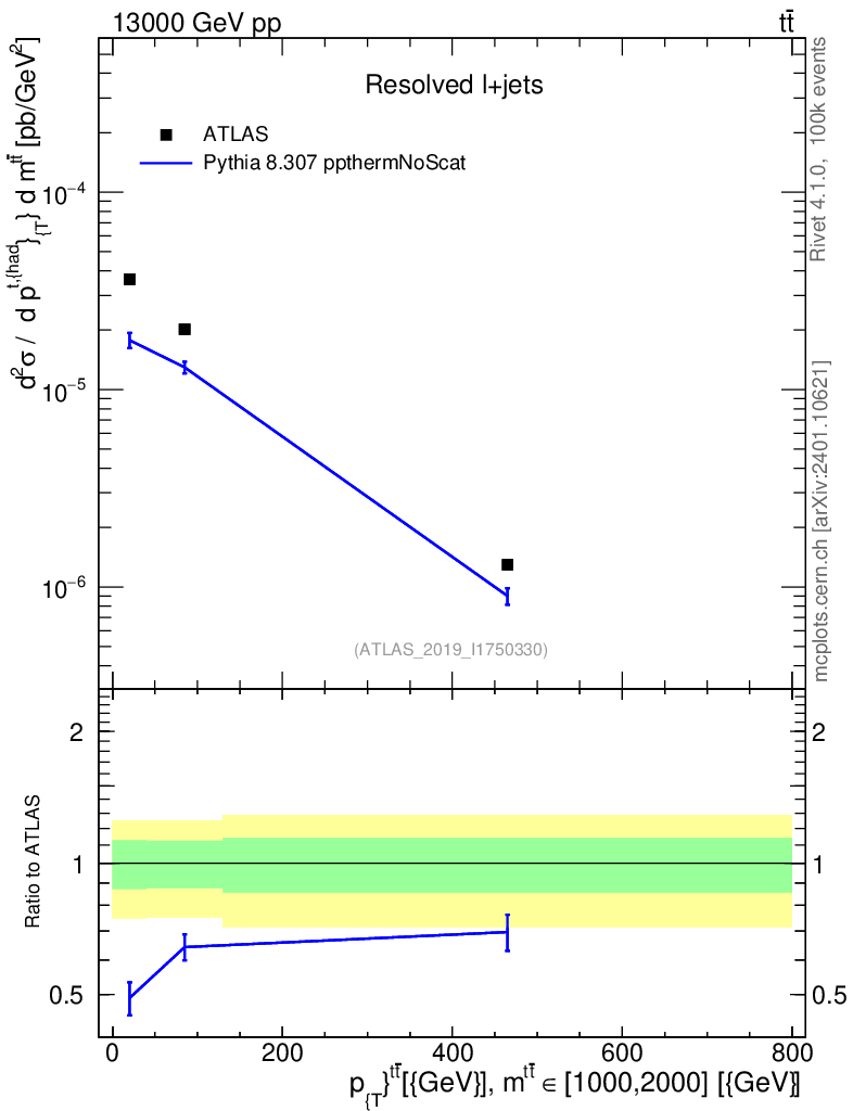 Lines: data, pythia8 8.307 ppthermNoScat |