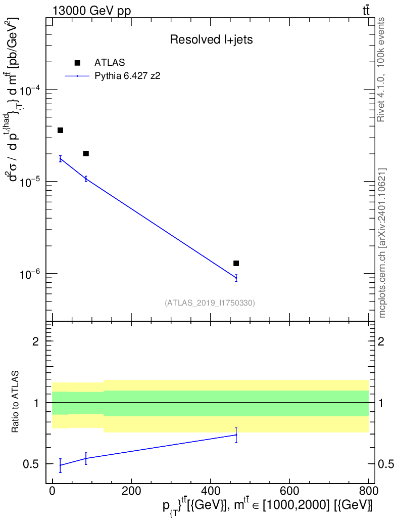 Lines: data, pythia6 6.427 z2 |