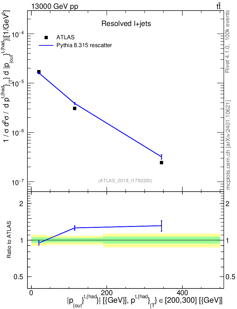 Lines: data, pythia8 8.315 rescatter |