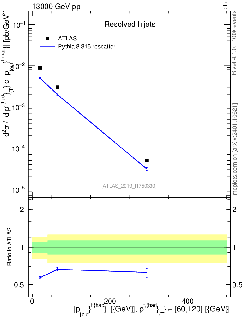 Lines: data, pythia8 8.315 rescatter |