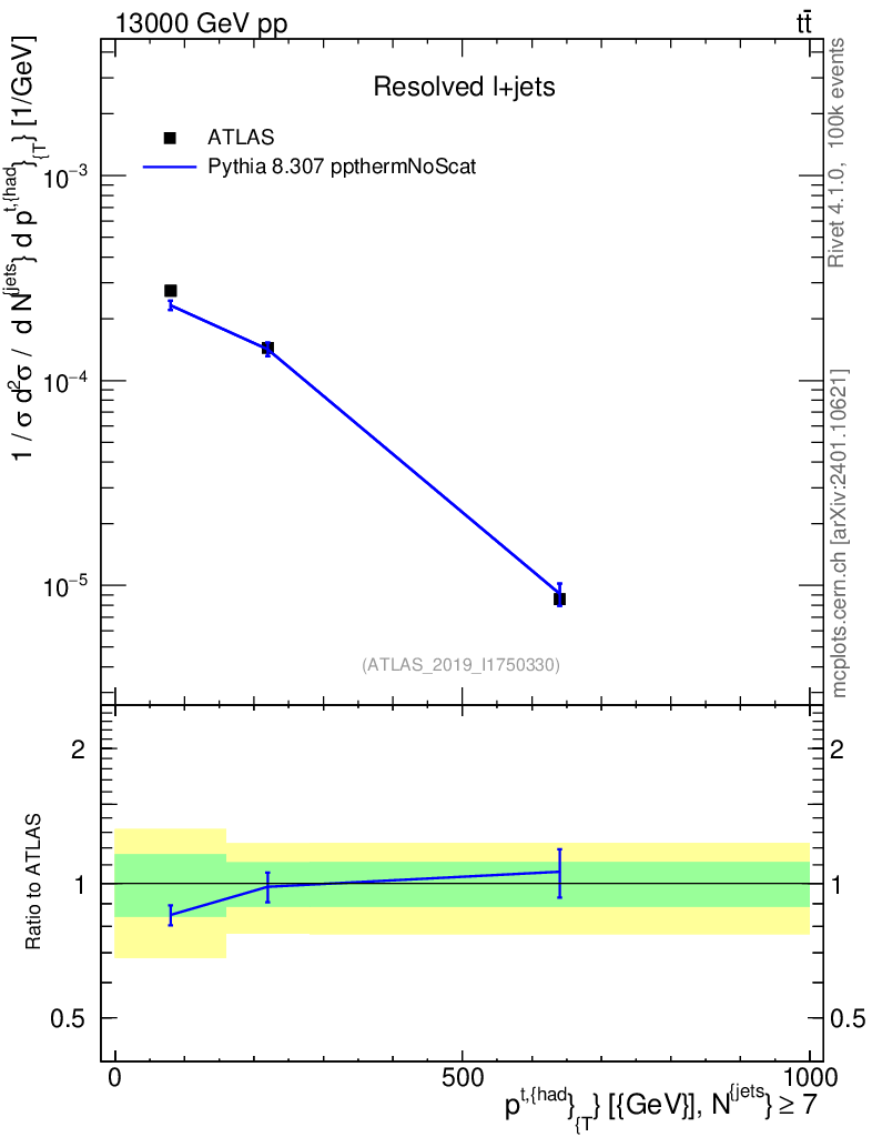 Lines: data, pythia8 8.307 ppthermNoScat |