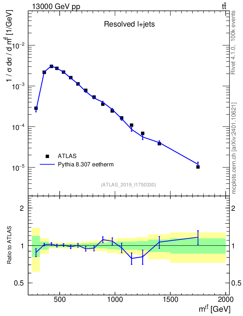 Lines: data, pythia8 8.307 eetherm |