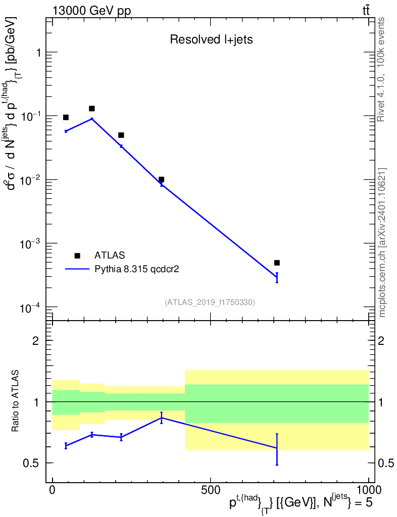 Lines: data, pythia8 8.315 qcdcr2 |