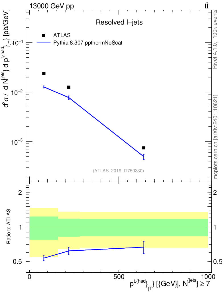 Lines: data, pythia8 8.307 ppthermNoScat |