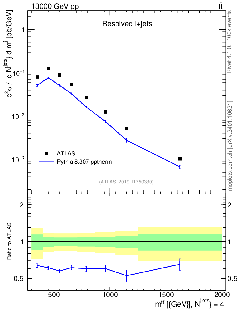 Lines: data, pythia8 8.307 pptherm |