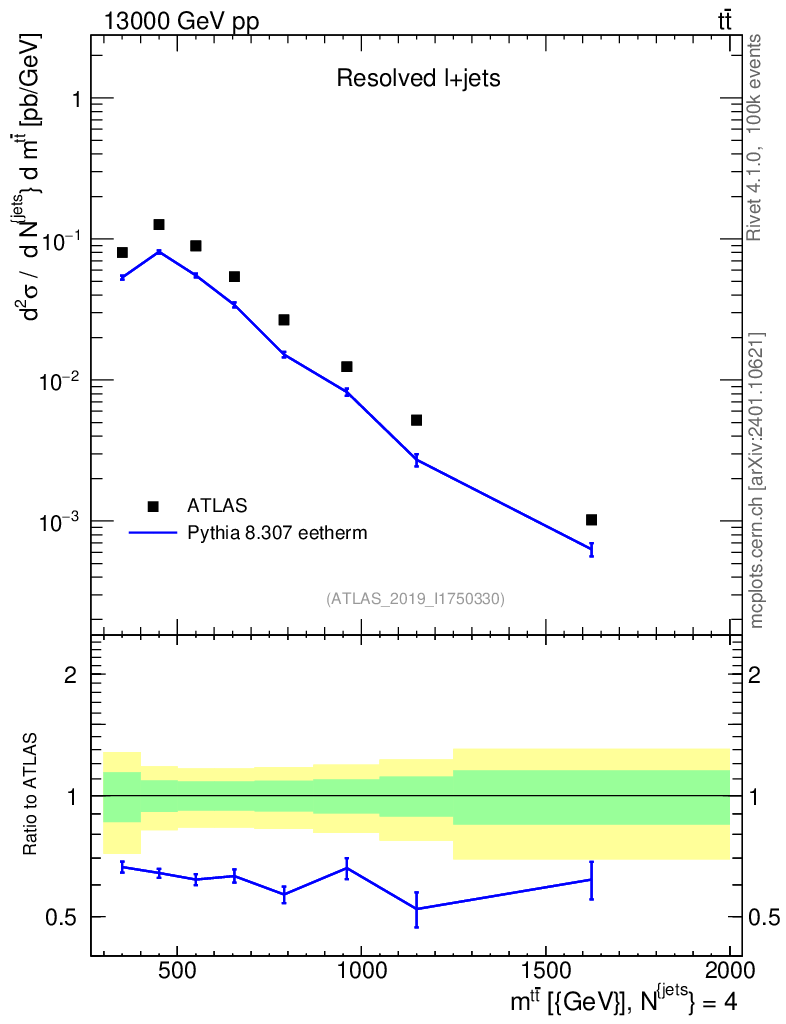 Lines: data, pythia8 8.307 eetherm |