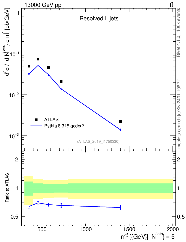 Lines: data, pythia8 8.315 qcdcr2 |
