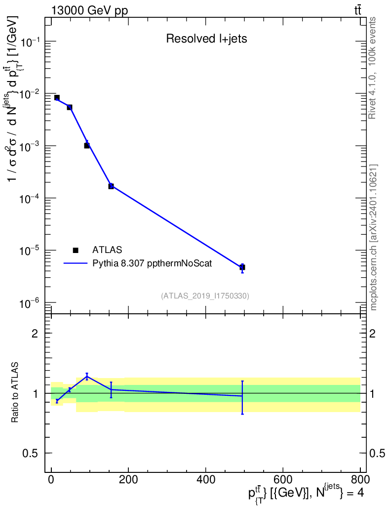 Lines: data, pythia8 8.307 ppthermNoScat |