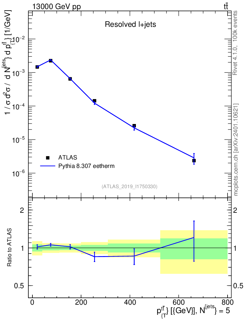 Lines: data, pythia8 8.307 eetherm |