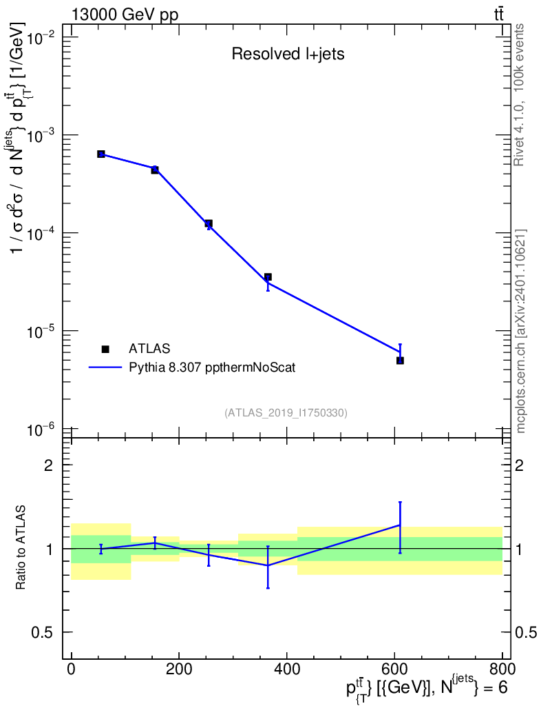 Lines: data, pythia8 8.307 ppthermNoScat |