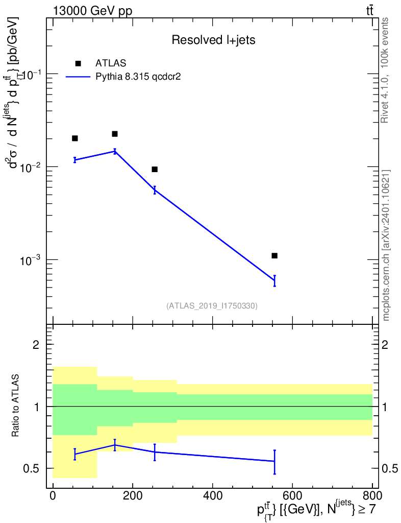 Lines: data, pythia8 8.315 qcdcr2 |