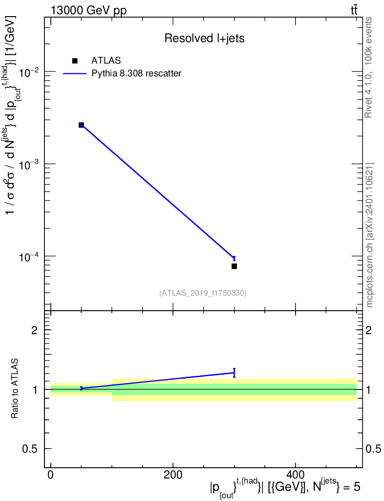 Lines: data, pythia8 8.308 rescatter |
