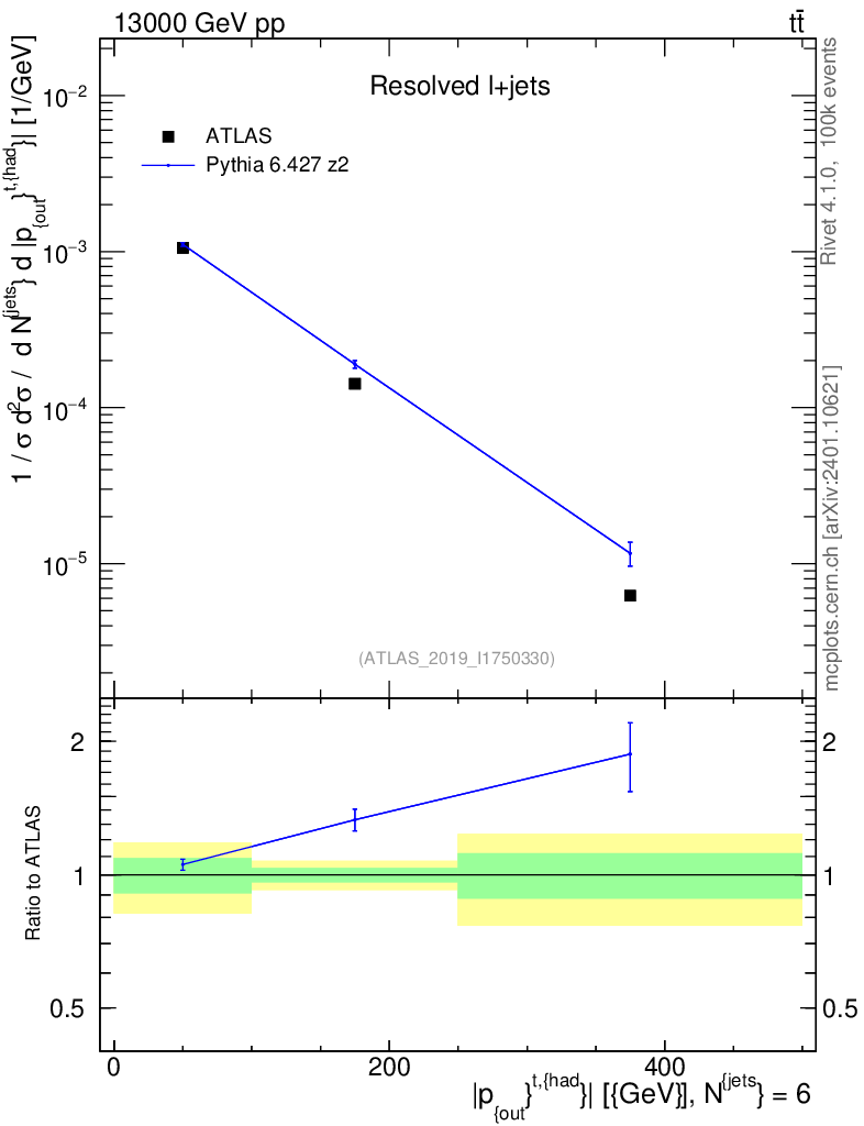Lines: data, pythia6 6.427 z2 |