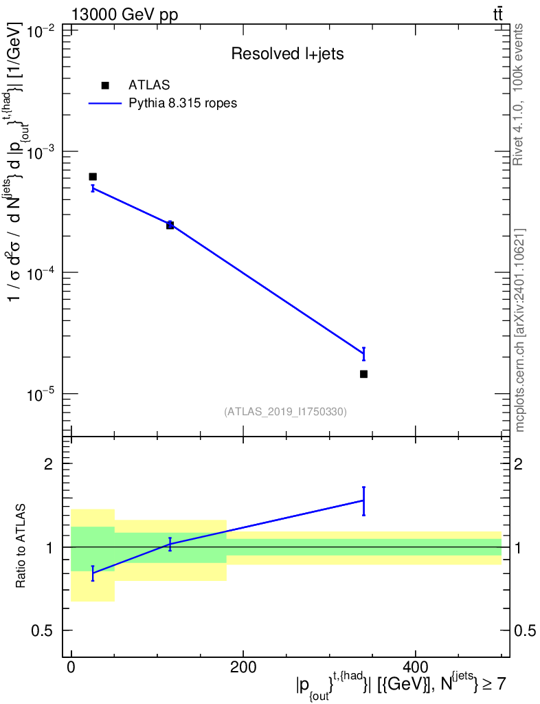 Lines: data, pythia8 8.315 ropes |