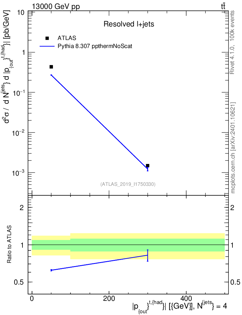 Lines: data, pythia8 8.307 ppthermNoScat |