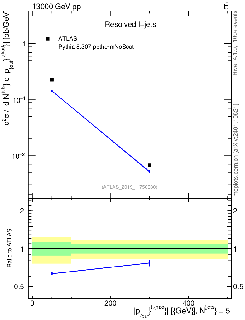Lines: data, pythia8 8.307 ppthermNoScat |
