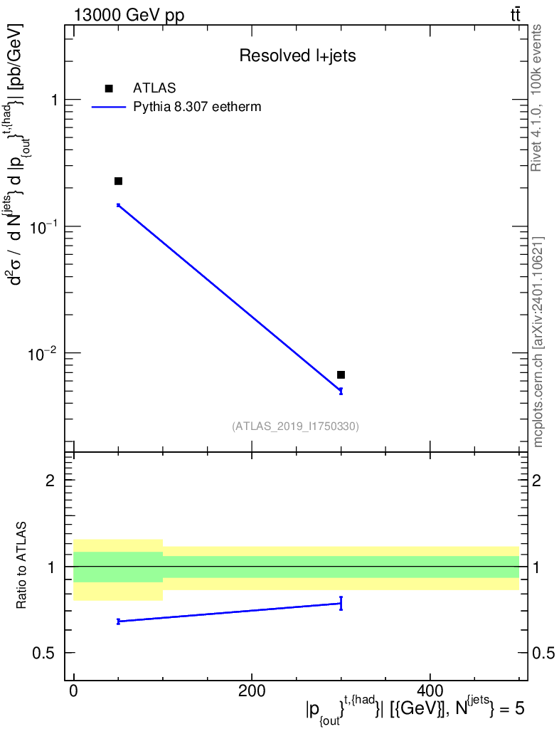 Lines: data, pythia8 8.307 eetherm |