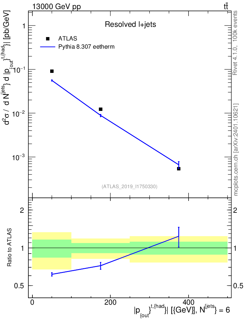 Lines: data, pythia8 8.307 eetherm |
