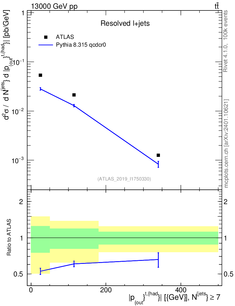 Lines: data, pythia8 8.315 qcdcr0 |