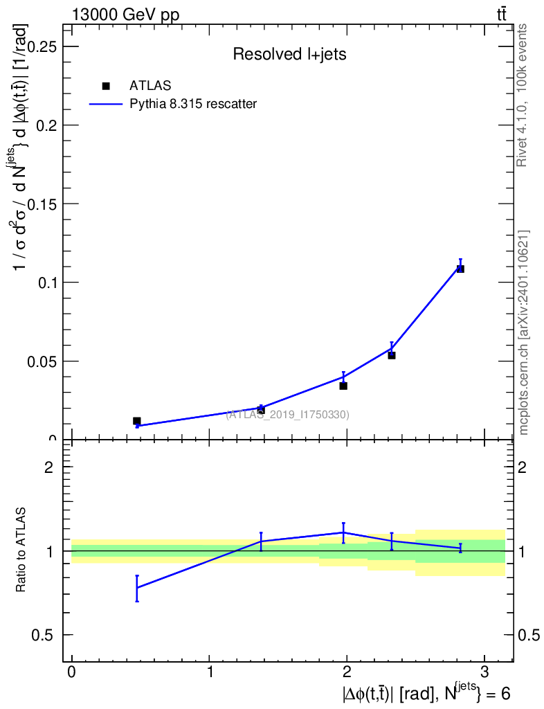 Lines: data, pythia8 8.315 rescatter |