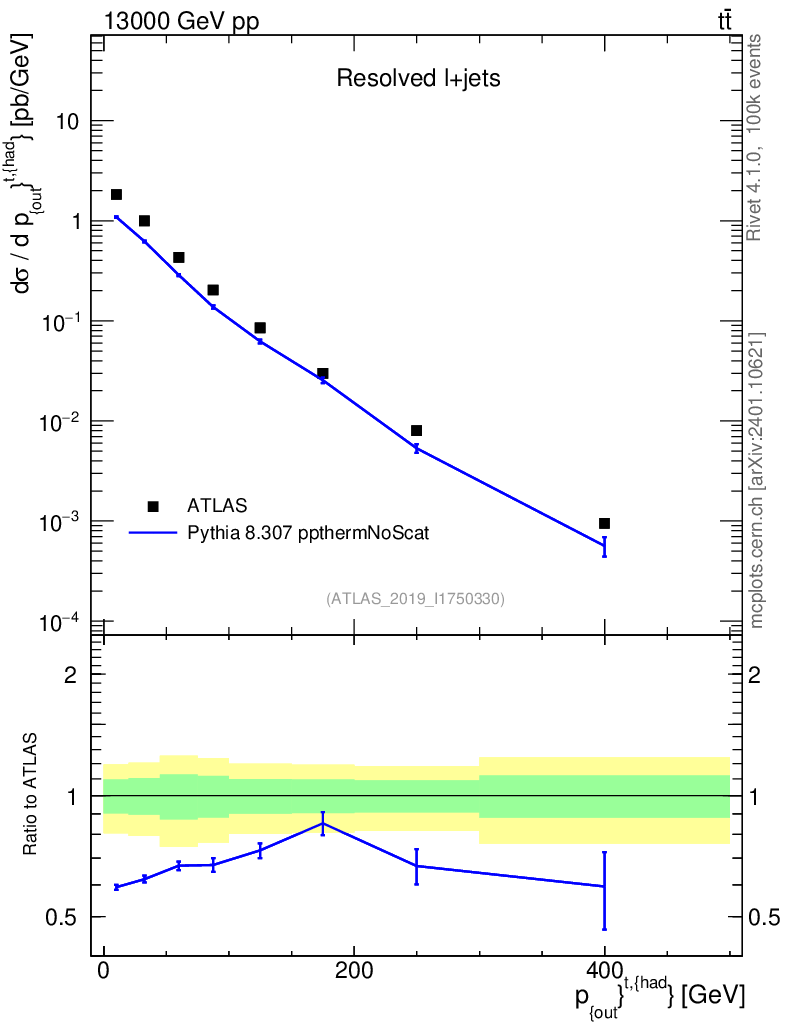 Lines: data, pythia8 8.307 ppthermNoScat |