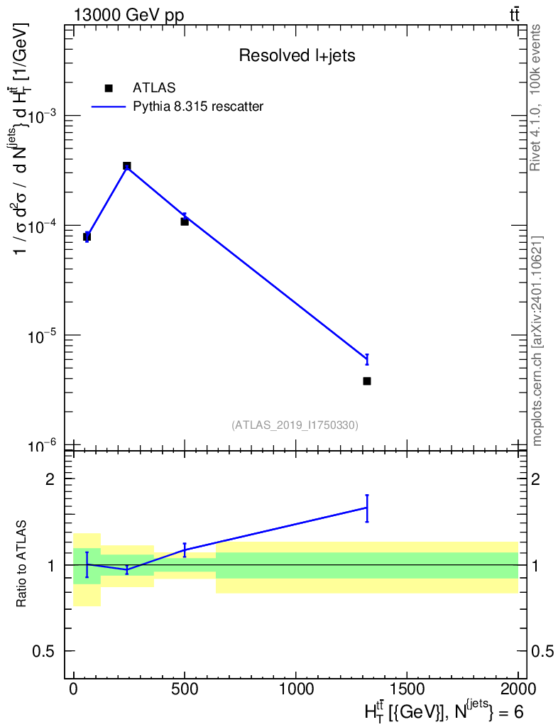 Lines: data, pythia8 8.315 rescatter |