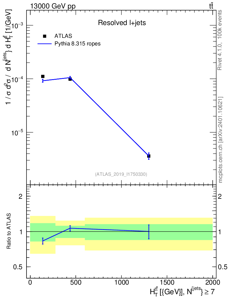 Lines: data, pythia8 8.315 ropes |