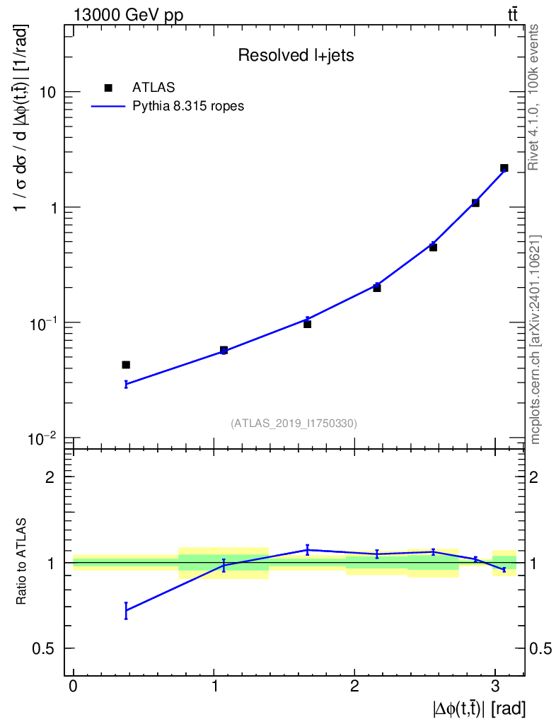 Lines: data, pythia8 8.315 ropes |